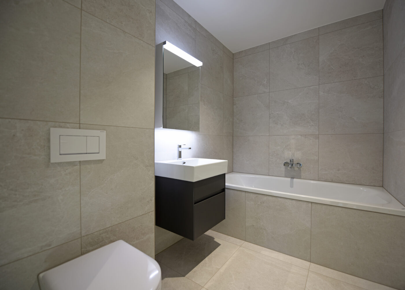 – Badezimmer mit WC, Duo-Badewanne und Lavabo mit Unterbaumöbel